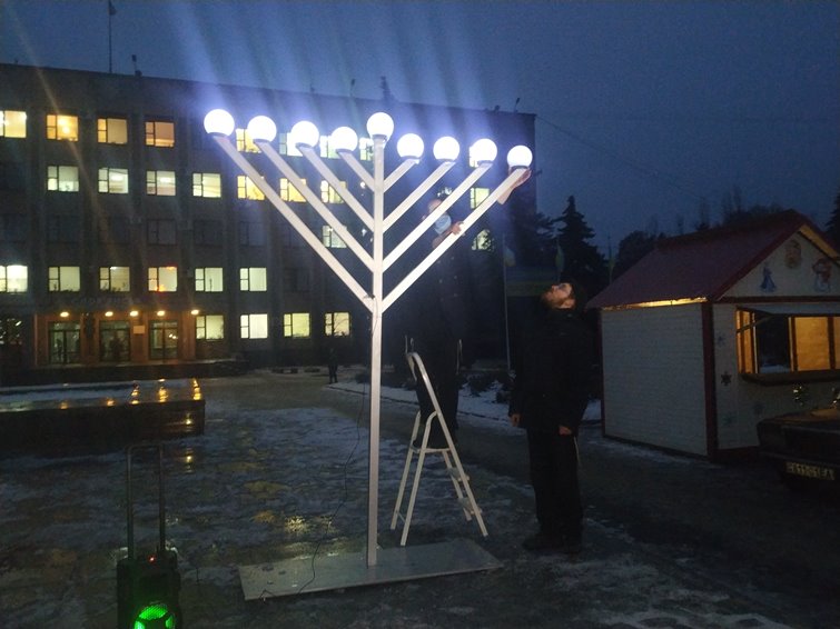 На центральной площади Славянска впервые зажгли Менору в честь праздника Ханука