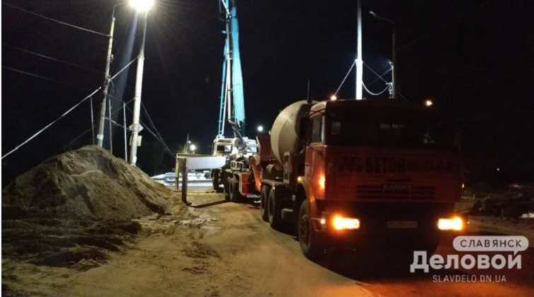 В Славянске аварийный мост через Казенный Торец заливают бетоном