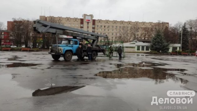 В Славянске начали устанавливать главную городскую елку
