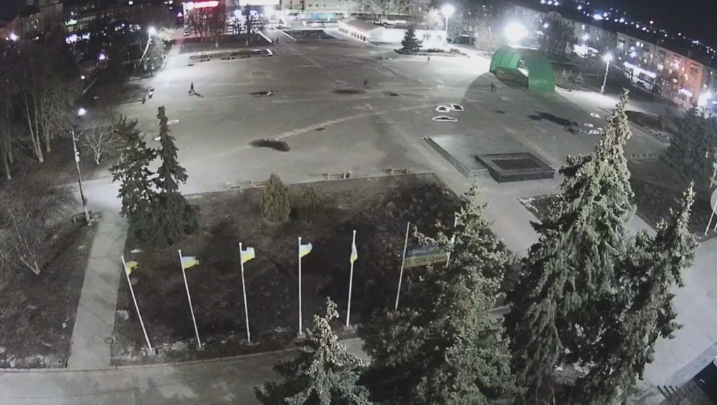 “УВАГА! Вчора в 20.30 троє невідомих пошкодили тентове покриття міської сцени. Ось відео з камер спостереження. Всіх, хто знає цих злочинців, прохання повідомити за номером: 095-523-48-25. (Марина Олійник)