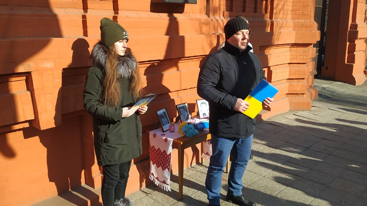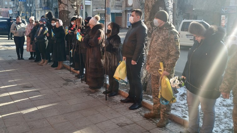 Представители городской власти, военные, волонтеры собрались у здания СБУ, чтобы постить память патриотов Украины, которые погибли за свободу и независимость нашей страны: Владимира Рыбака, Юрия Дяковского и Юрия Поправки.
