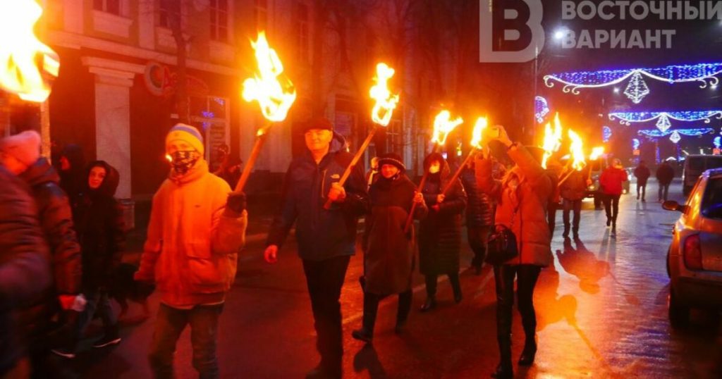 Ежегодно 1 января в Славянске проходит факельный марш ко Дню рождения Степана Бандеры.