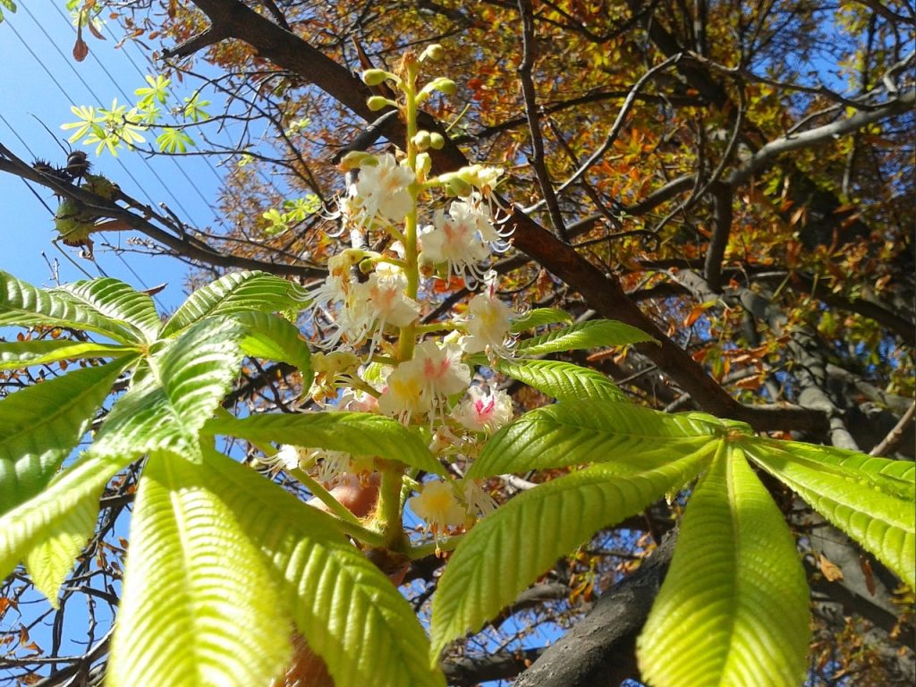 “СНОВА ЦВЕТУТ КАШТАНЫ В СЛАВЯНСКЕ – 23.09.20.”, – подписала фото автор.