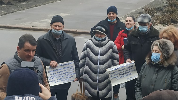 Сегодня, 4 февраля, жители микрорайона Славянский курорт устроили митинг перед зданием Славянского городского совета с требованием, решить проблему с электроснабжением своих домов.