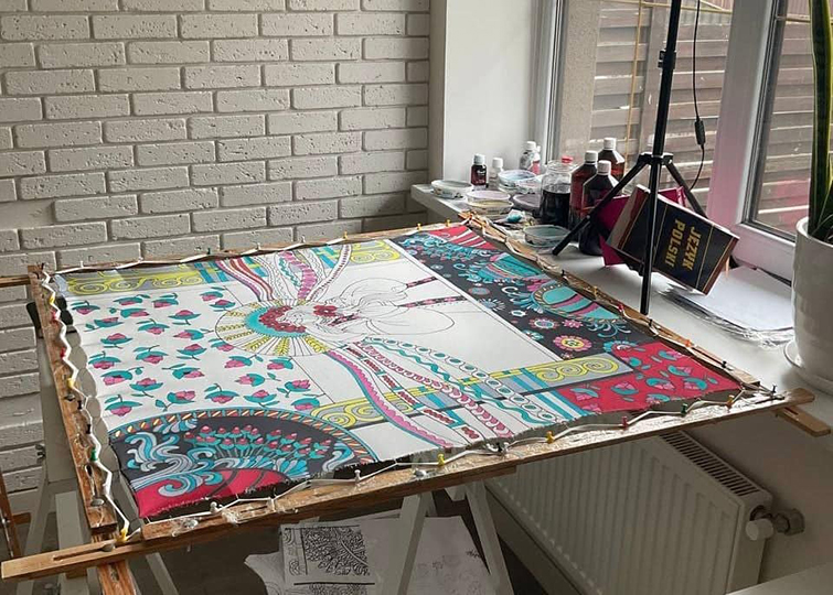 Через деякий час майстриня вже розписувала хустки, шарфи, палантини, туніки та гобелени з унікальними малюнками. Коли почалося повномасштабне вторгнення, родині Світлани знов довелося переїжджати. Згодом, після звільнення міста українськими військовими, Світлана повернулась й відновила своє ремесло.