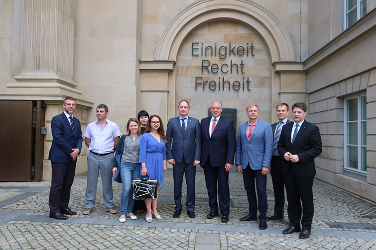 Чтобы ознакомиться с немецким опытом формирования политики единства страны, Фондом Конрада Аденауэра была организована стажировка украинских политиков в Берлине и Ганновере, посвященная вопросам изучения структурной и информационной политики во время разделения Германии. По словам руководителя филиала Фонда Конрада Аденауэра в Украине (г. Харьков) Тим Б. Петерса такие поездки стали уже доброй традицией. В ходе которых, представители украинского политикума знакомятся с мероприятиями, благодаря которым Федеративная Республика Германия в 1945-1989 гг. придерживалась политики единства страны и способствовала развитию территорий, прилегающих к тогдашней линии разделения Германии. В ходе визита состоялись встречи с депутатами Бундестага, высокопоставленными чиновниками офиса Федерального канцлера, министрами и вице-президентом Ландтагу Нижней Саксонии. А посещение мемориалов, созданных на месте Центра первичного приема переселенцев и крупнейшего пограничного пункта на бывшей границе ГДР и ФРГ, еще раз подчеркнуло схожесть этих трагических моментов в истории наших стран.