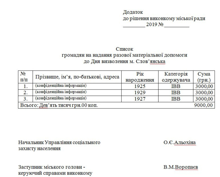 Влада Cлов’янська планує виділити трьом ветеранам по три тисячі гривень