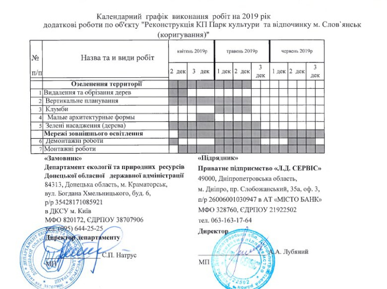Как оказалось, 27 июня, появились новые изменения к договору с подрядчиком ЧП «ЛД Сервис, в связи с тем, что появились дополнительные работы. Изменился и график выполнения работ. И теперь работы в очередной раз должны закончиться в октябре 2019 г. На проект в 2019 г. планируется выделить 6,3 млн. гривен.