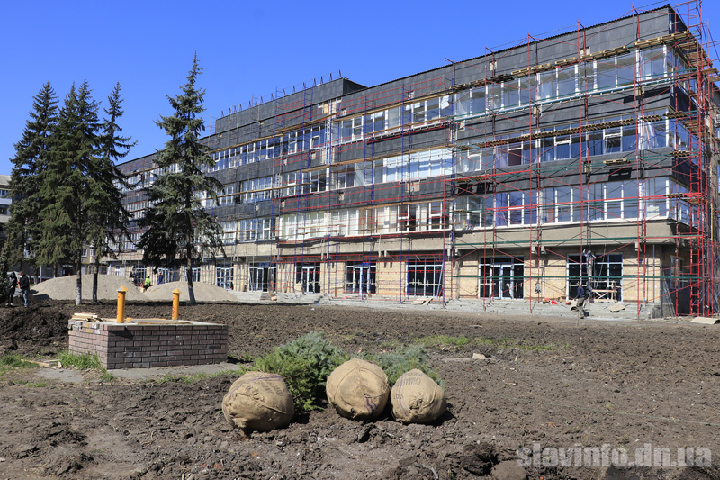 Работы у здания, где раньше располагалось конструкторское бюро коксохимического машиностроения в рамках проекта «Реконструкция зеленой зоны общего пользования – бульвар Пушкина, г. Славянск» продолжаются быстрыми темпами во время карантина.