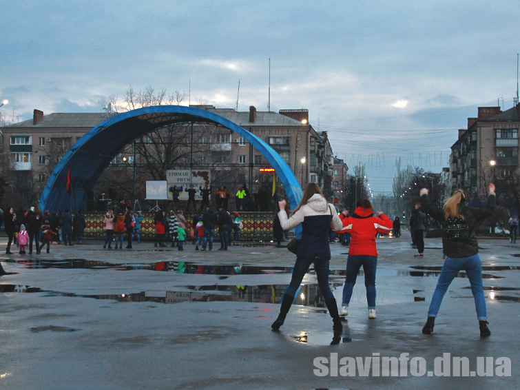 Сегодня, 17 марта, на центральной площади Славянска после небольшого перерыва, связанного с ремонтом сцены, общественники продолжили свой танцевальный проект. Подобные мероприятия проводятся второй год по воскресеньям для всех желающих как детей, так и взрослых.