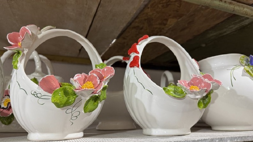 “Чому сувенірної? Тому що ми не виготовляємо побутову. Сувенірна, а саме — ваза, цукерниця. А ще спеціалізуємося на цукерницях. Є цукерниці плетені, не плетені”, — каже чоловік.