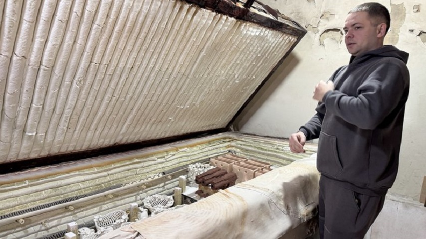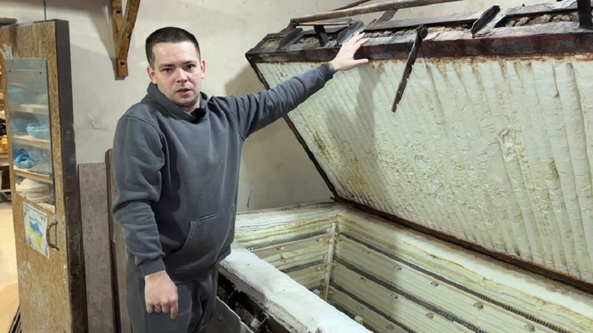 “Оця пічка важить 1,2 тонни без кришки. Взяти її обережно маніпулятором та кудись привезти — це просто неможливо. Це не кажучи про те, що треба повибивати всі стіни, щоб її якось дістати, повернути, викотити. Тому це будемо кидати”, — говорить кераміст.