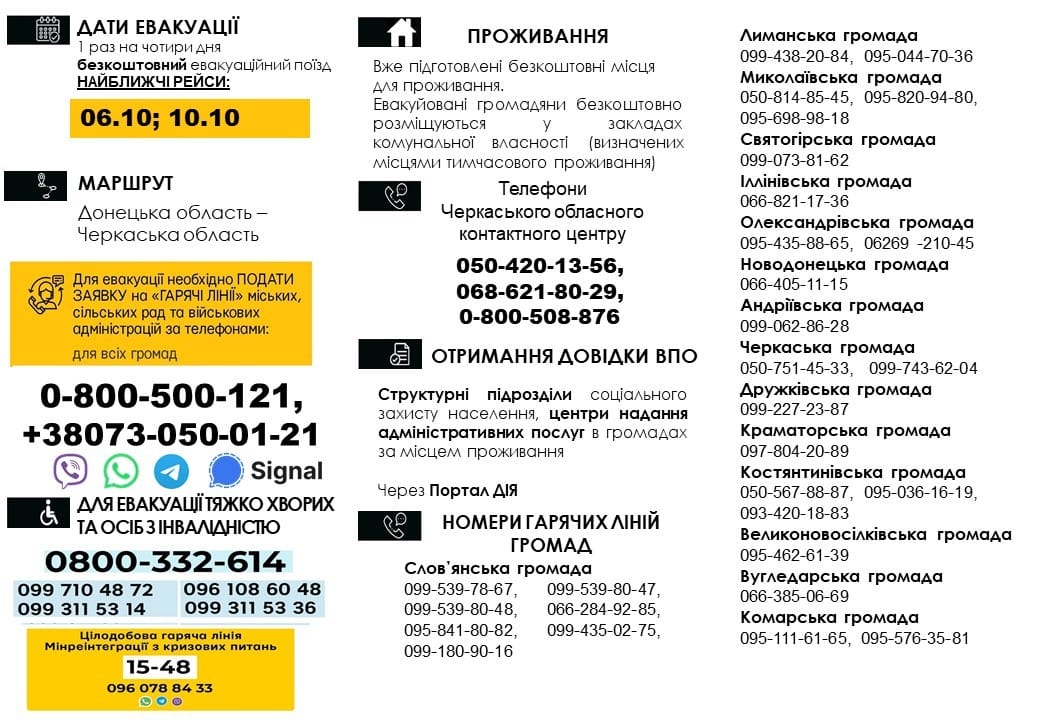 З 6 жовтня починається безкоштовна евакуація мешканців Донеччини до територіальних громад Черкаської області