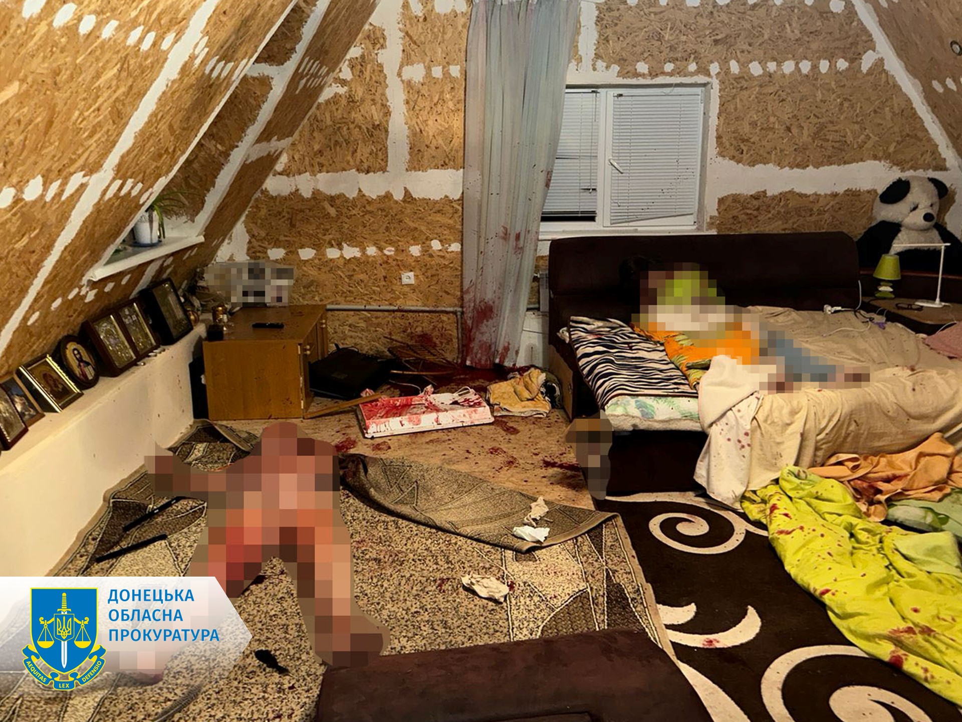 Чоловік піднявся на другий поверх, де мати з дівчинкою ховалися в одній з кімнат, і вибив двері. Зайшовши до приміщення, він накинувся на них з ножем, завдаючи множинних ударів по всьому тілу. Жінці було нанесено близько 20 поранень. Побачивши, що жертви не подають ознак життя, нападник втік, але його швидко затримали правоохоронці.