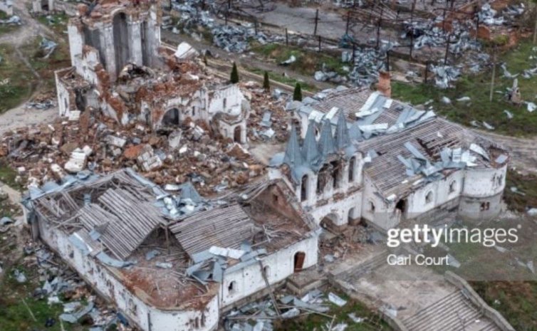 Оприлюднені фото зруйнованого російськими обстрілами Свято-Георгіївського скиту у с. Долина. Від будівель, які входять до комплексу Святогірської лаври нічого не залишилося. Все це було знищено російськими окупаційними військами, коли вони вели наступ у сторону Слов’янська.