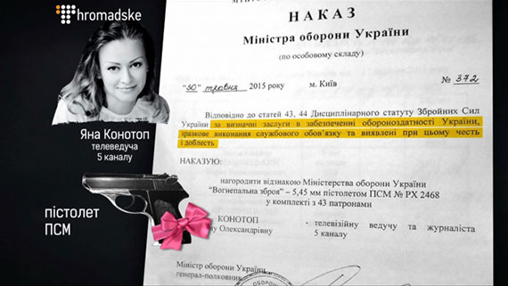 Министр обороны наградил куму Порошенко оружием “за честь и доблесть”