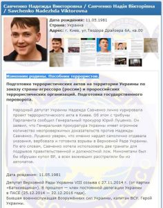 Героя Украины Надежду Савченко внесли в базу сайта “Миротворец”