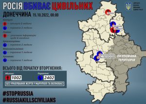Через російські обстріли на Донеччині за добу загинули двоє мирних жителів, шестеро поранено, у Лимані виявили ще 6 цивільних, убитих росіянами під час окупації