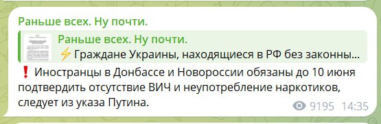 Крім того, на тій частині території України, яка тимчасово перебуває в російській окупації, «іноземці» повинні будуть пройти обстеження та надати підтвердження відсутності ВІЛ і вживання наркотиків. Ідеться про окуповані райони Донецької, Луганської, Херсонської та Запорізької області.