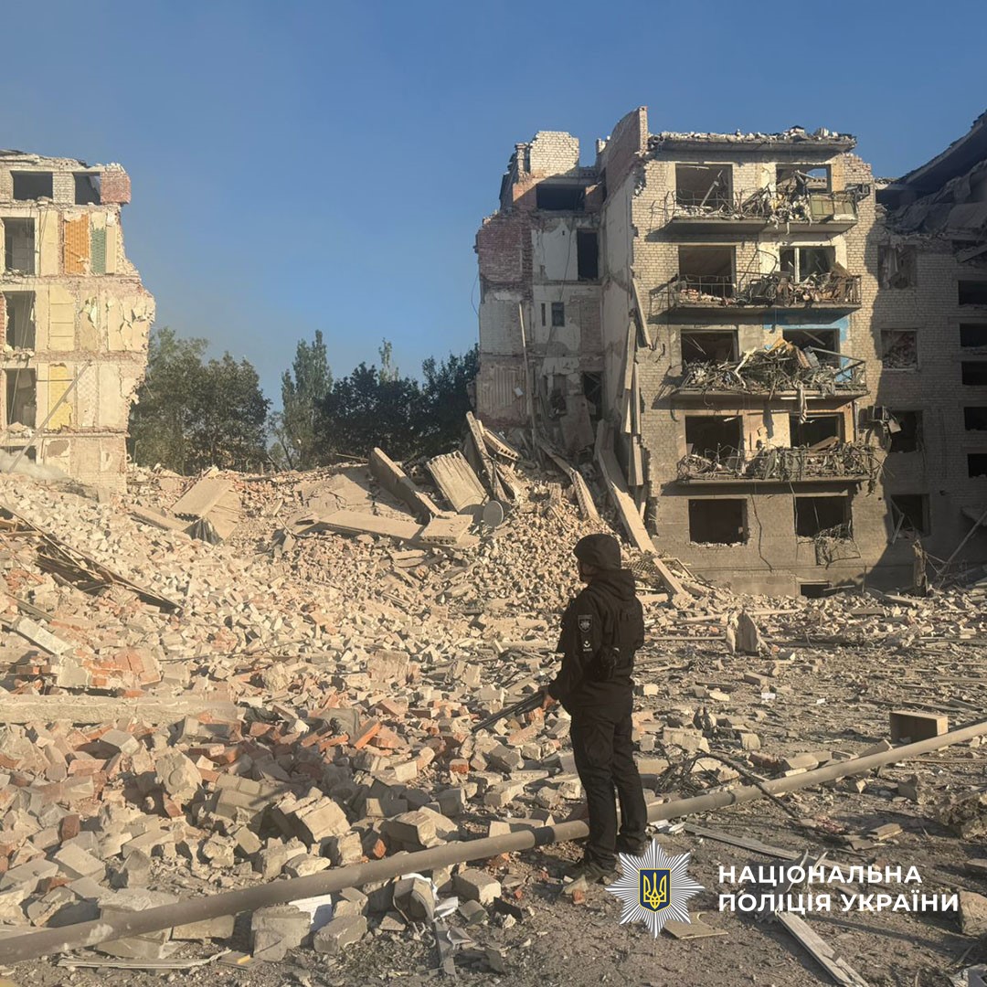 Покровський район. На Білозерське ворог кинув бомбу «КАБ-250» – є поранений, пошкоджено багатоквартирний будинок і 2 гаражі. У Покровську пошкоджено будинок. У Грузькому Шахівської громади пошкоджено 14 приватних будинків і адмінбудівлю; у Новотроїцькому — 2 будинки.