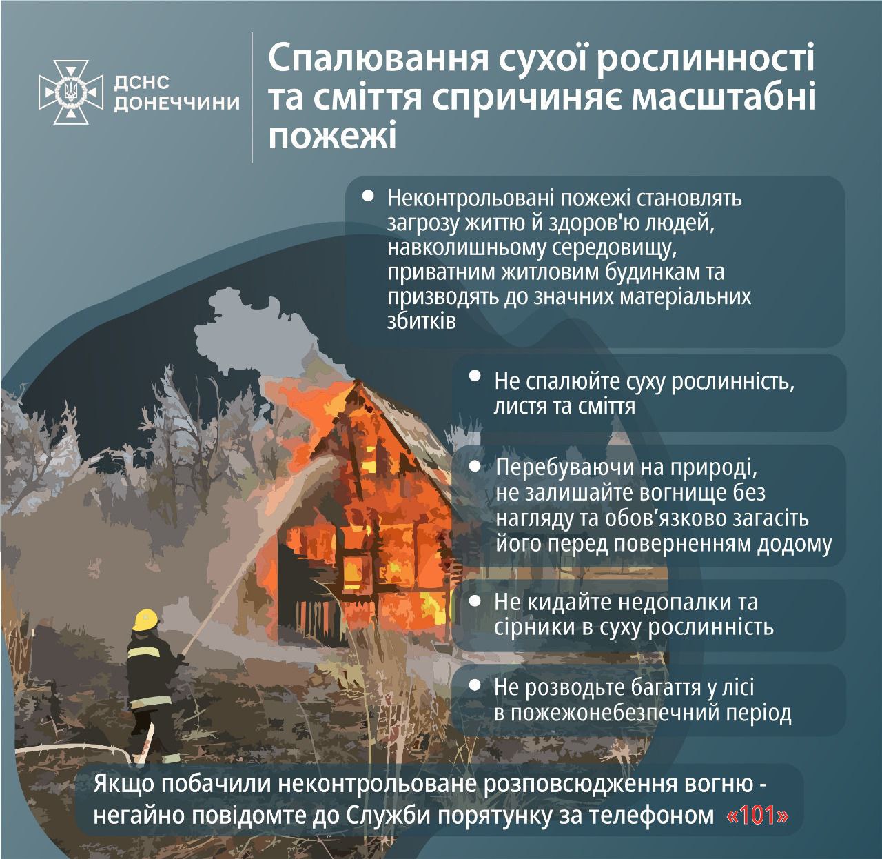 Якщо помітили пожежу — негайно телефонуйте 101!