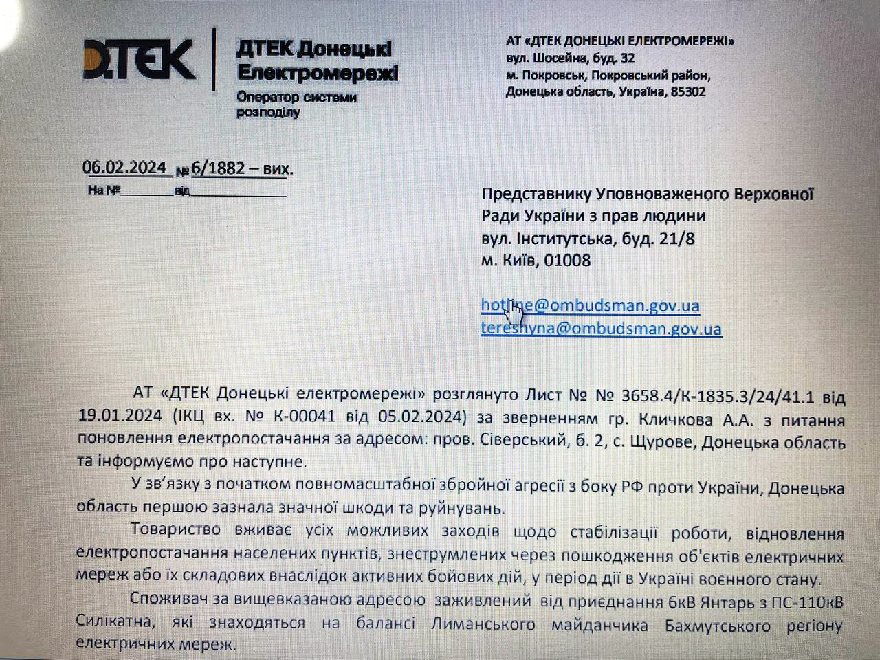 АТ «ДТЕК Донецькі Електромережі»