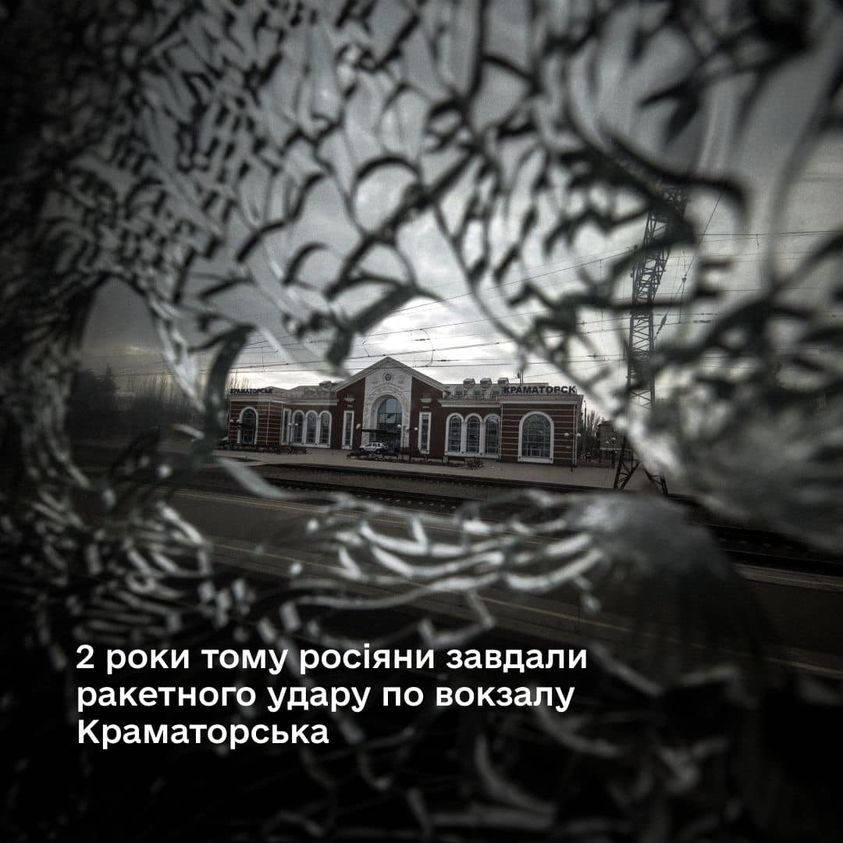 Рівно два роки тому, 8 квітня 2022 року, держава-терорист росія здійснила ракетну атаку на залізничний вокзал Краматорська, звідки тоді масово евакуювались мешканці регіону. За даними правоохоронців, у результаті цього військового злочину проти цивільних загинула 61 людина, у тому числі 7 дітей.