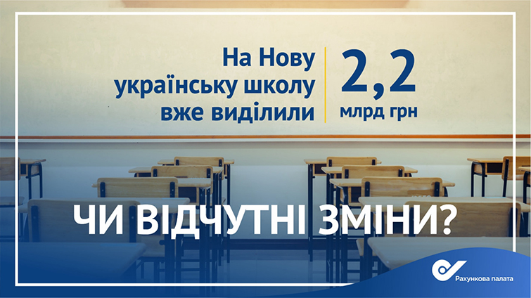 Аудитори Рахункової палати перевірили ситуацію в 127 школах 9 регіонів. Впродовж 2018 року – 9 місяців 2019 року відкрито асигнувань на 2 млрд 279 млн грн. Використано 80% – 1,83 млн грн, 17% (391 млн грн) – станом на 1 жовтня цього року невикористані та знаходилися на рахунках місцевих бюджетів і бюджетних установ, а 57 млн грн – на кінець 2018 року повернено до державного бюджету.