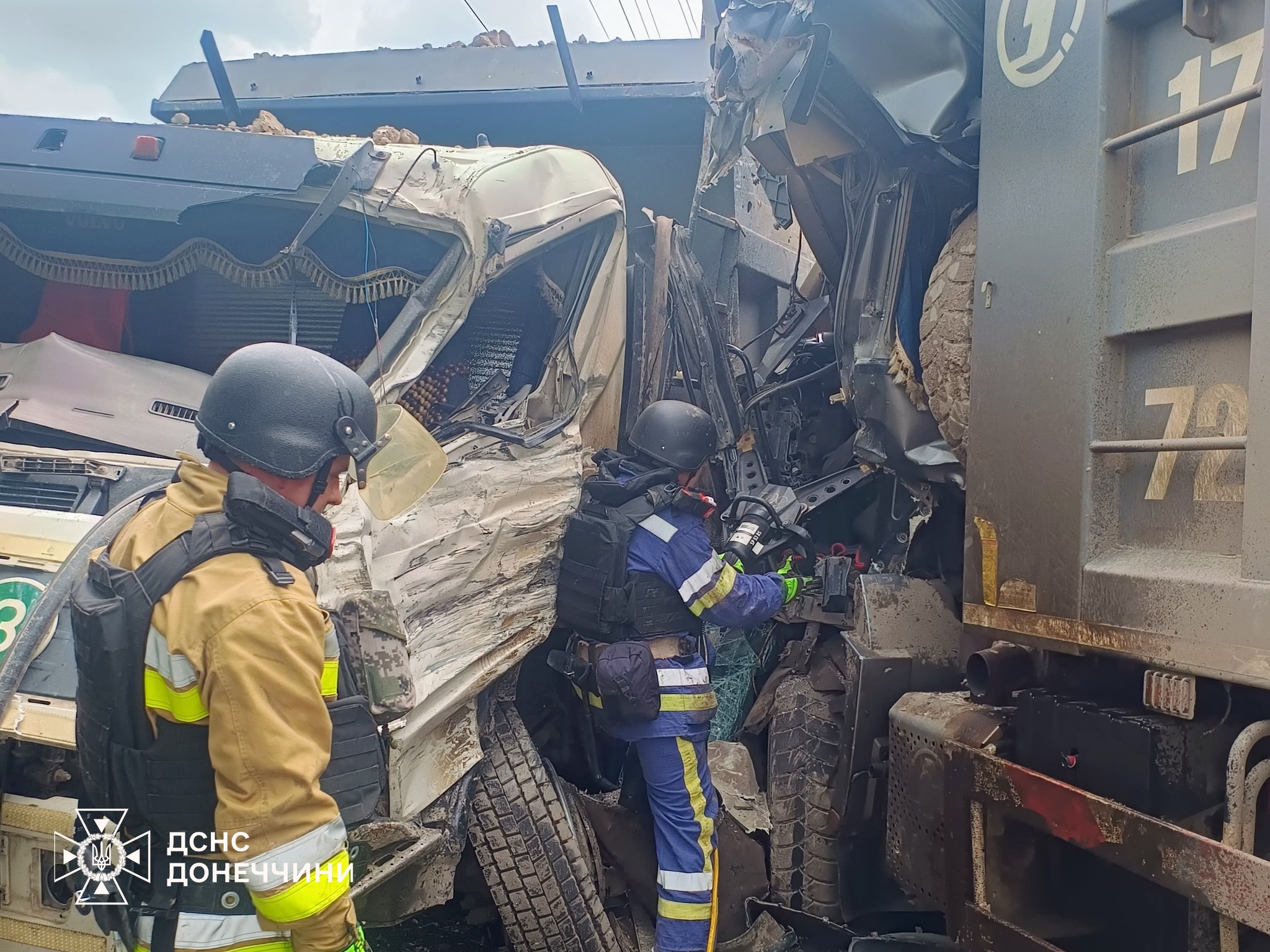 Аварія в Краматорському районі з блокуванням чоловіка у понівеченій вантажівці
