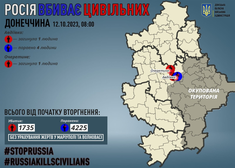 За 11 жовтня росіяни вбили 2 жителів Донеччини: в Авдіївці й Очеретиному.