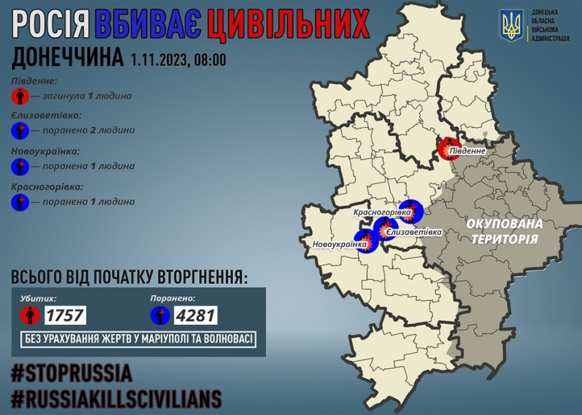 За 31 жовтня росіяни вбили 1 жителя Донеччини — в Південному.