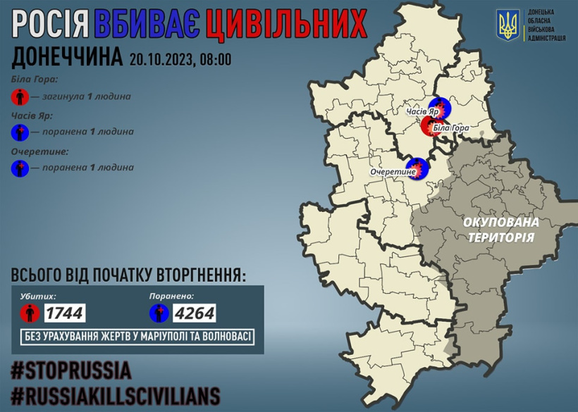 За 19 жовтня росіяни вбили 1 жителя Донеччини — у Білій Горі.