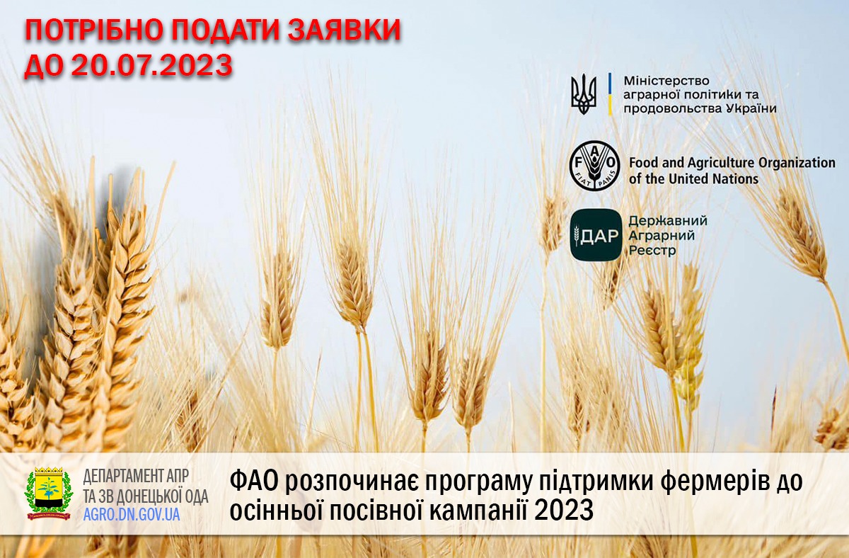 Програма підтримки малих фермерів під час осінньої посівної кампанії 2023 року реалізується ФАО за фінансової підтримки Урядів Японії та Норвегії в дев’яти найбільш постраждалих від війни областях України, включаючи Сумську, Чернігівську, Донецьку, Харківську, Дніпропетровську, Запорізьку, Миколаївську, Херсонську та Одеську області.