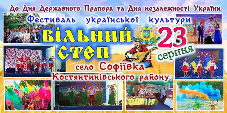 23 августа в с. Софиевка Константиновского района состоится фестиваль украинской культуры “Вільний степ”, приуроченный к празднованию Дня независимости Украины.