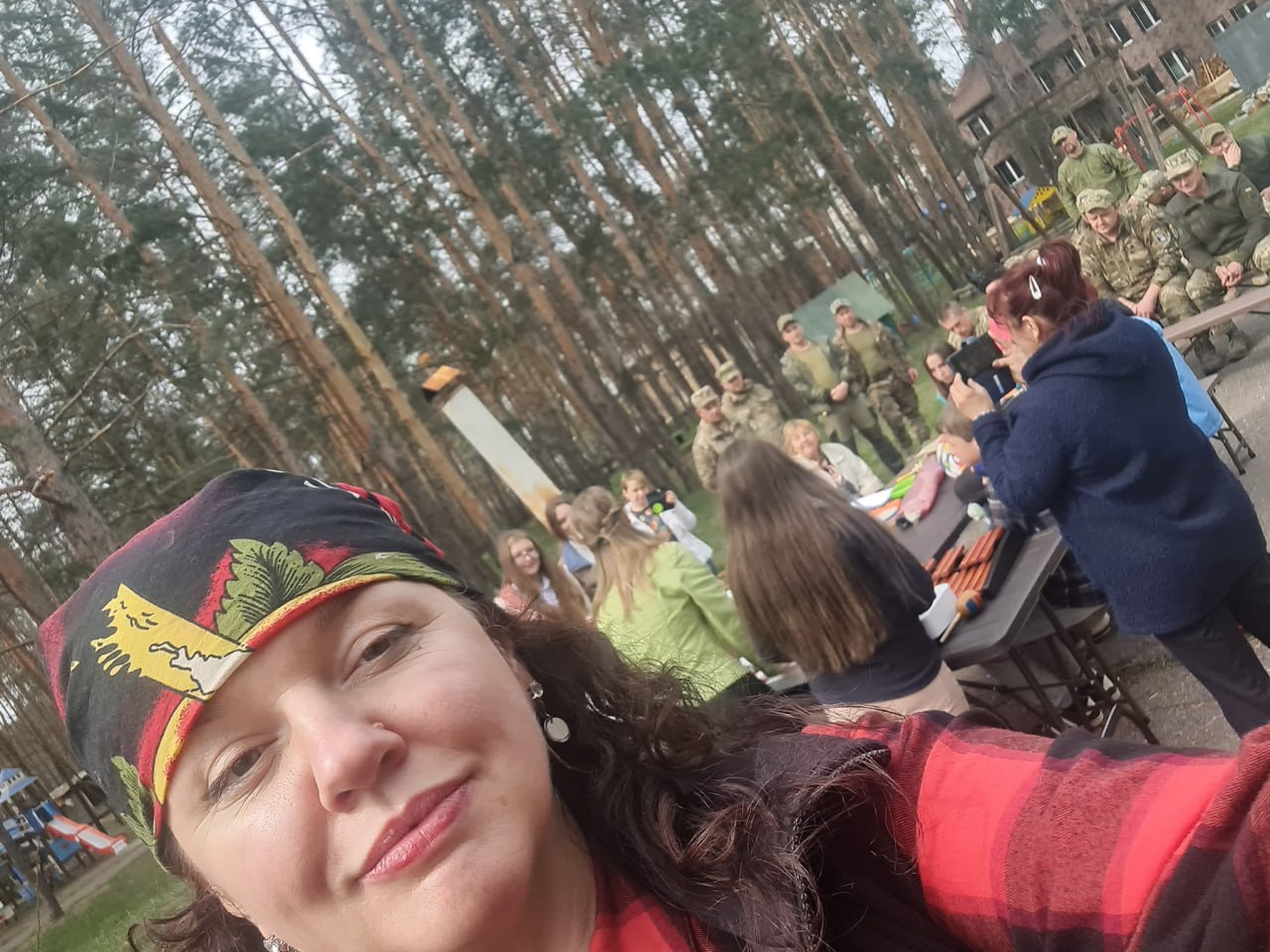 «То був січень, вже після деокупації. Вони їхали вони у різдвяний тур Сходом України «Різдво на фронті». У Святогірськ приїхали на запрошення моєї подруги, яка запросила і мене приєднатися. На мені була організація зустрічі, щоб їх пропустили до Лаври, щоб вони побували в музеї, зібрали дітей. А з ними приїхала дівчина з Полтави – Катерина Гаврилова. І коли я побачила, як вона ладнає з дітьми, з яким захопленням з ними спілкується, як вони реагують, то була дуже вражена».
