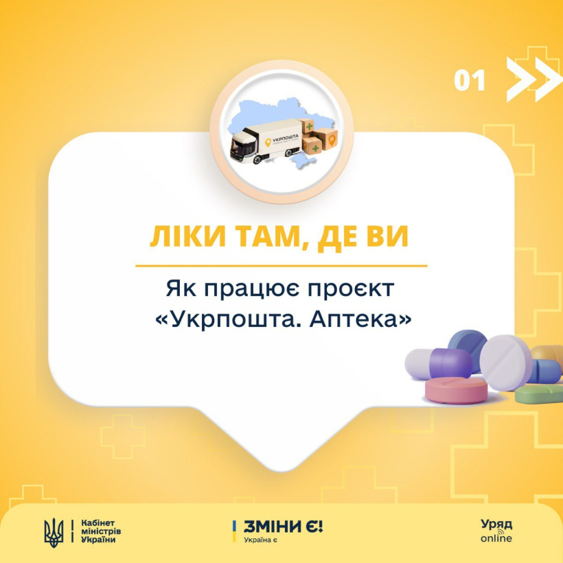 Українці можуть замовити ліки телефоном й отримати їх безоплатно поштою в рамках проекту «Укрпошта.Аптека».