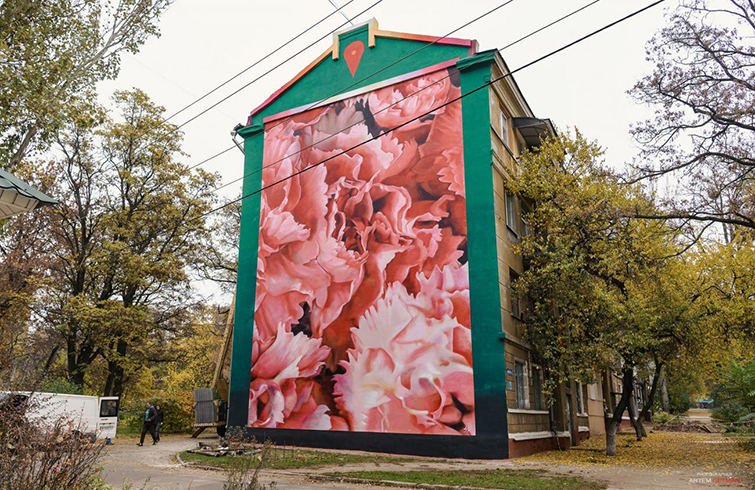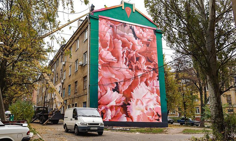На Мурале изображены розы. Так увидел художник современный Краматорск.