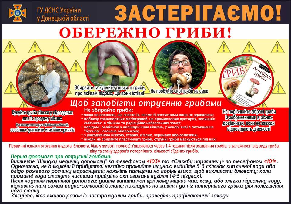 Дуже гарні погодні умови для збору грибів. Для того щоб прекрасний відпочинок не обернувся для вас трагічно, рятувальники Слов`янська нагадують про небезпеку отруєння грибами.