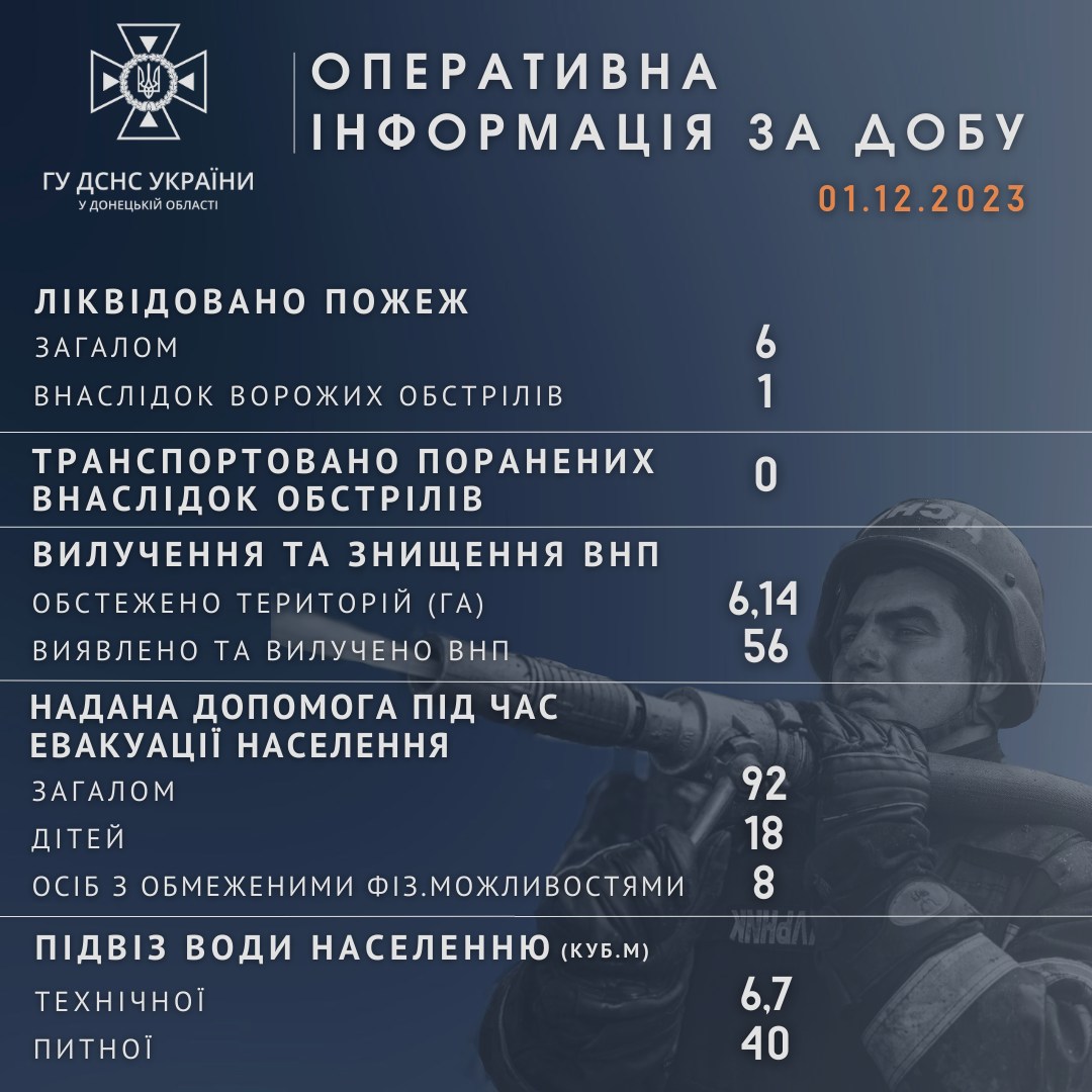 Оперативна інформація щодо роботи рятувальників Донеччини за 1 грудня