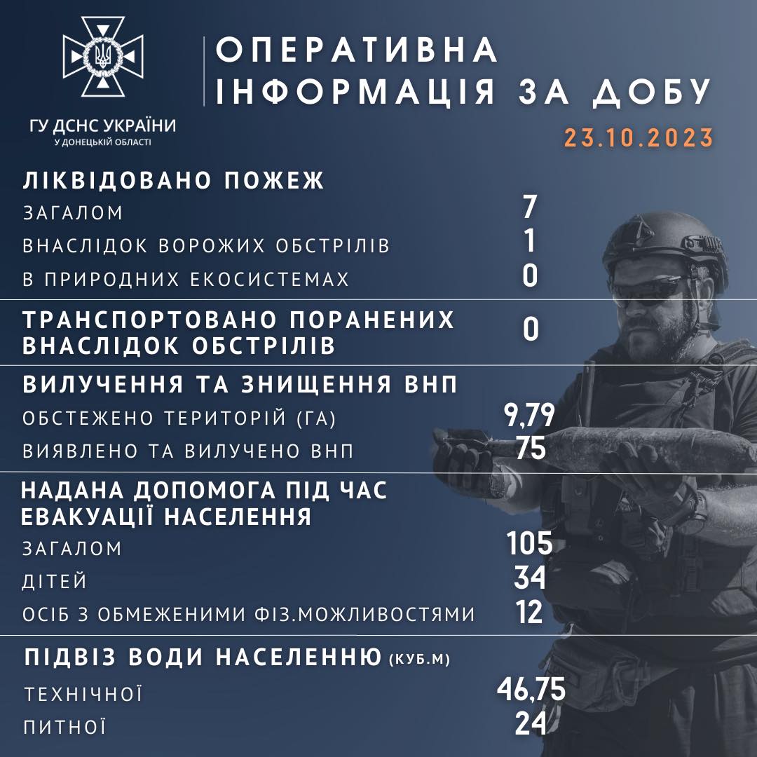 Оперативна інформація щодо роботи рятувальників Донеччини за 23 жовтня