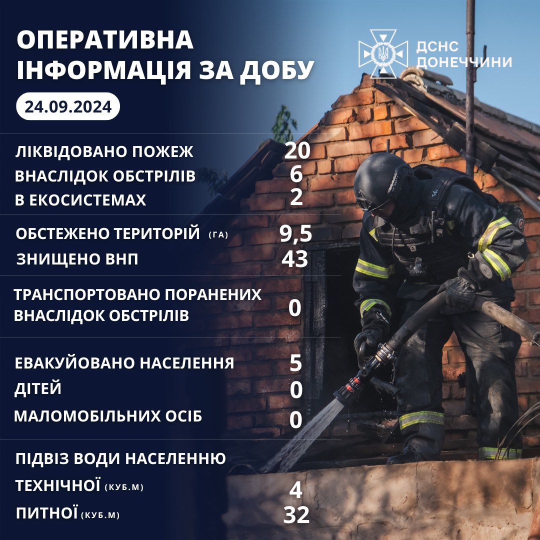 Оперативна інформація щодо роботи рятувальників Донеччини за 24 вересня