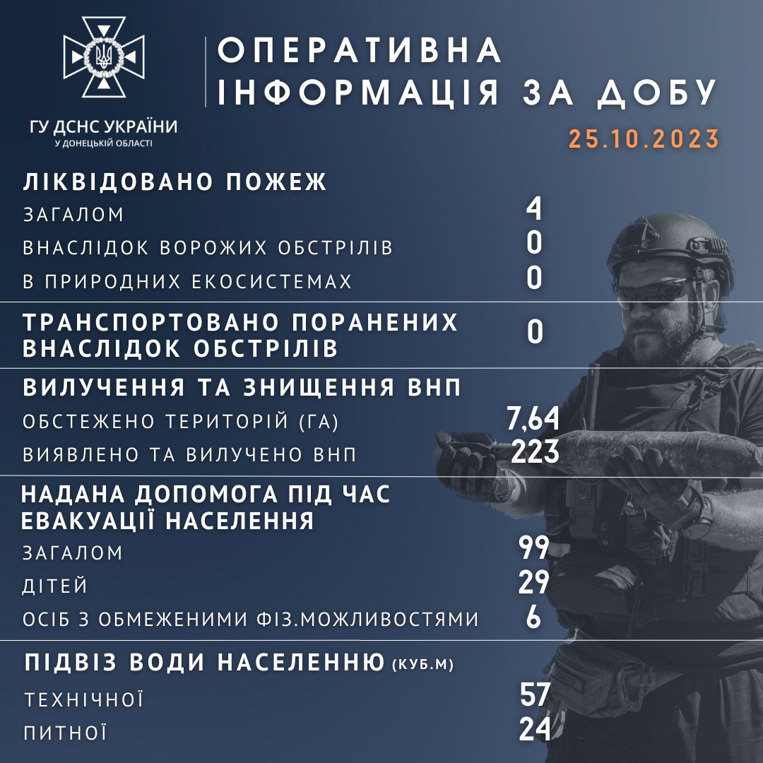 Оперативна інформація щодо роботи рятувальників Донеччини за 25 жовтня