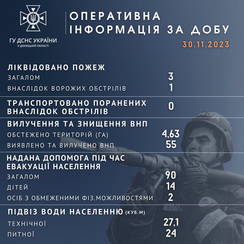 Оперативна інформація щодо роботи рятувальників Донеччини за 30 листопада