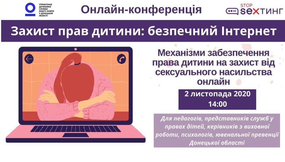 Управління Державної служби якості освіти у Донецькій області, спільно із освітнім проєкту «Стоп_секстинг», запрошує освітян області взяти участь у практичній міжсекторальній онлайн-конференції «Захист прав дитини: безпечний Інтернет»
