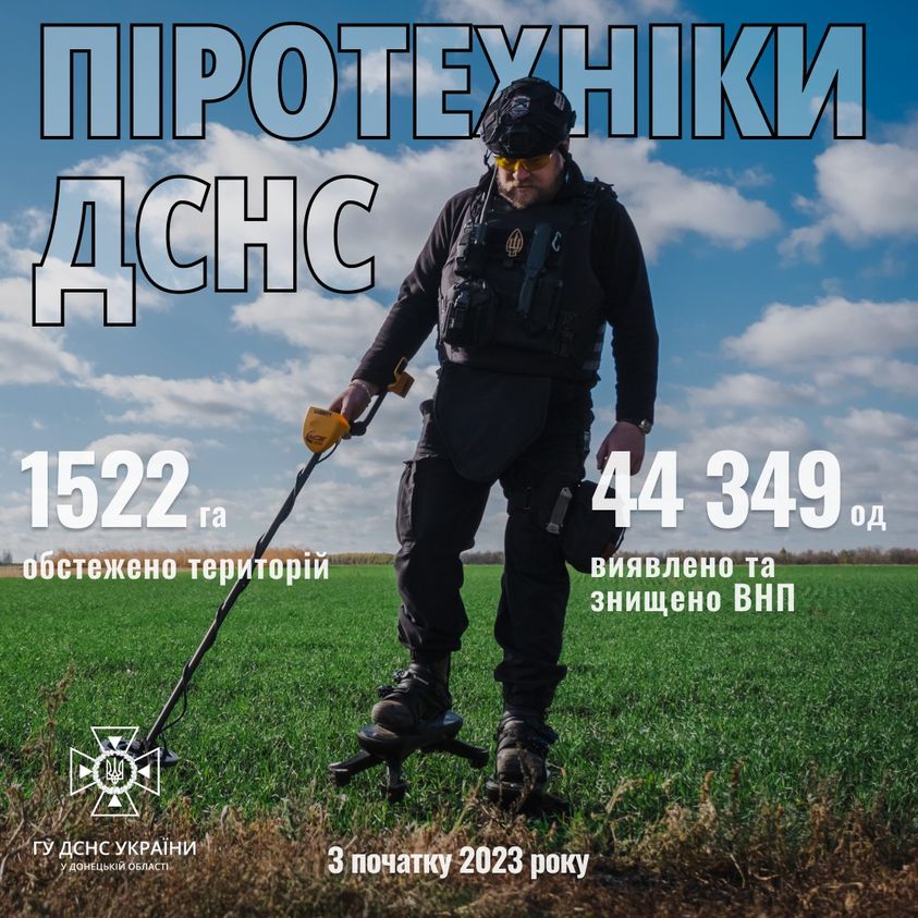 Понад 1 500 га території Донеччини обстежили на наявність вибухонебезпечних предметів піротехнічні розрахунки ДСНС протягом 2023 року