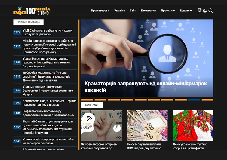Місто Краматорськ не припиняє свого розвитку навіть у часи війни. Разом із ним розгортаються й місцеві ЗМІ, серед яких виділяється Pro100media.
