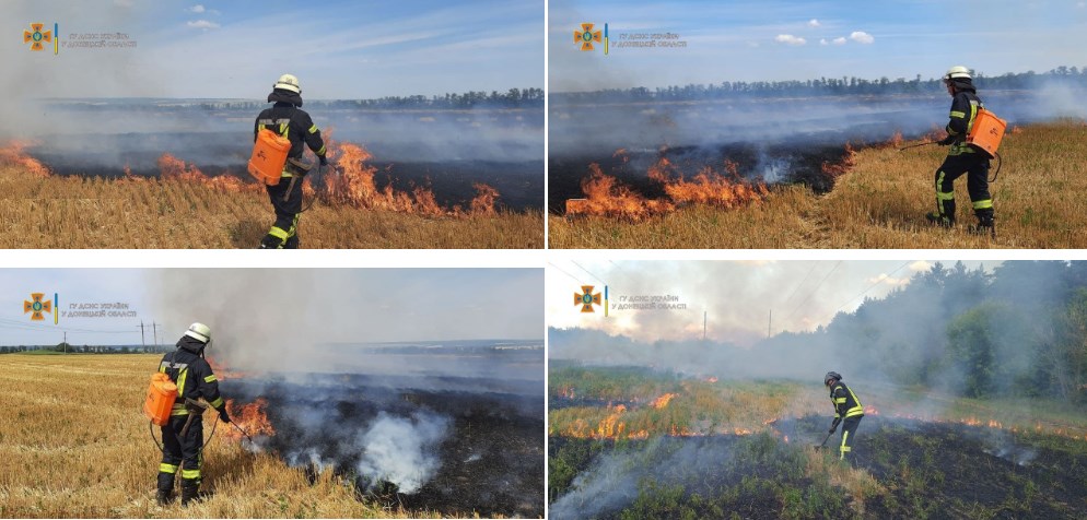 Зокрема, за минулу добу, 08 серпня, на території області виникло 6 пожеж в екосистемах на території Краматорського та Покровського районів на території сільгоспугіддях. Всього було знищено стерня на площі 13,5 га. Протягом 07 серпня виникло 10 пожеж в екосистемах на території Краматорського, Волноваського, Покровського, Маріупольського та Бахмутського районів, зокрема 10 пожеж на території сільгоспугідь. В результаті пожеж було знищено стерня на площі 17,63 га та пшениця на корені на площі 0,09 га.