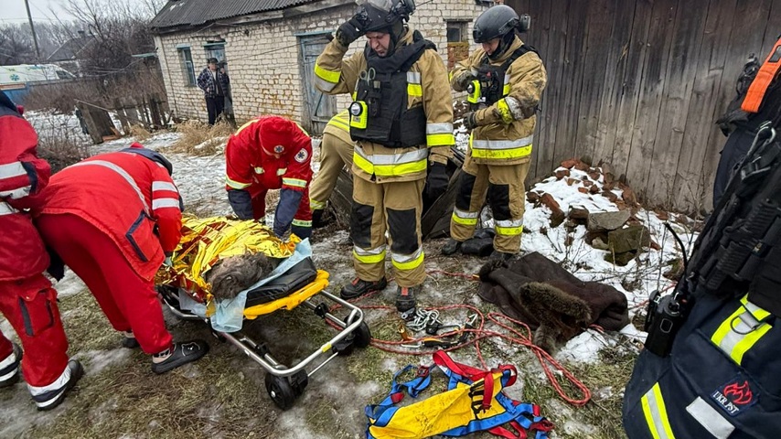 На місце прибули рятувальники. За допомогою рятувальної косинки та пожежного рукава вони обережно підняли постраждалу на поверхню та передали медикам швидкої допомоги.