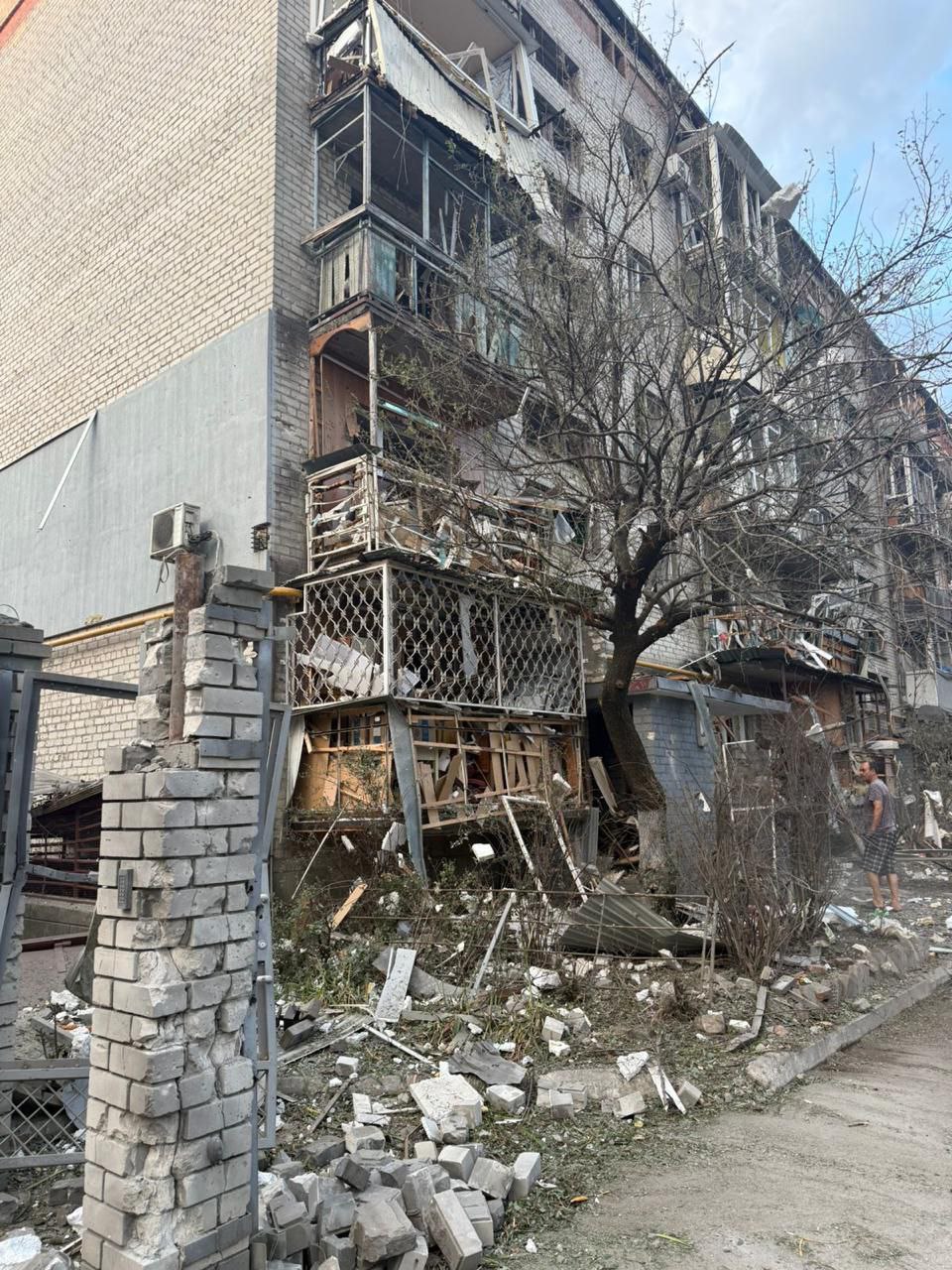 У Слов’янську поранено 5 людей, пошкоджено 5 багатоповерхівок , адмінбудівлю і 10 автівок. Краматорськ росіяни обстріляли трьома БПЛА – поранили людину, пошкодили приватний будинок, гараж, автомобіль.