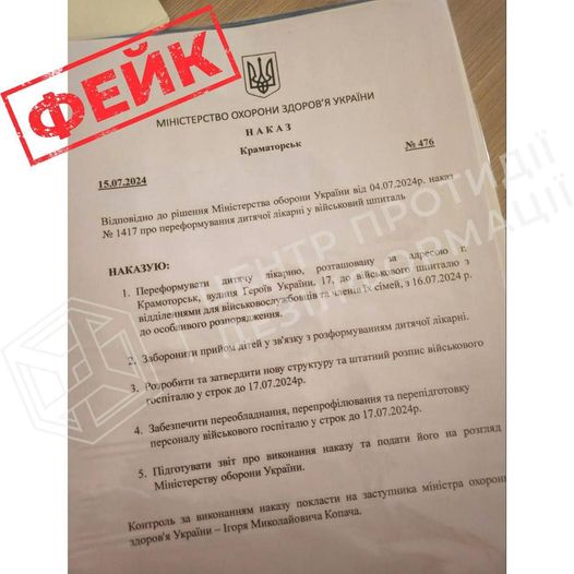 Як доказ ворог поширює буцімто відповідний наказ МОЗ України.
